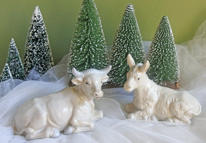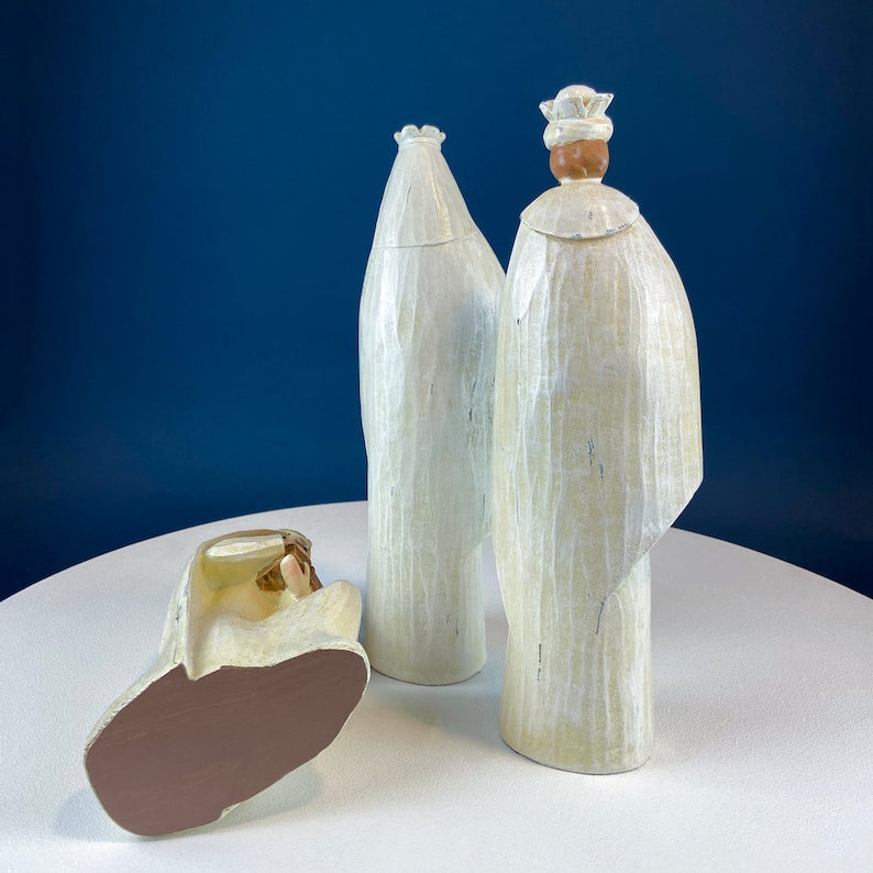 Conjunto de Presépio Robert Stanley com 7 Peças. Promessa de Natal. Figuras Modernas, Alongadas e Principalmente Brancas, Pintadas à Mão. Decoração de Natal.