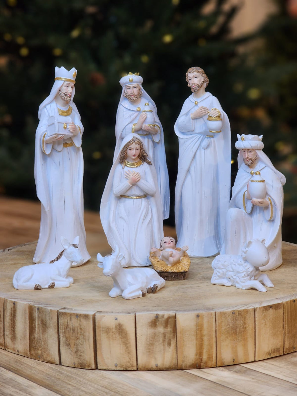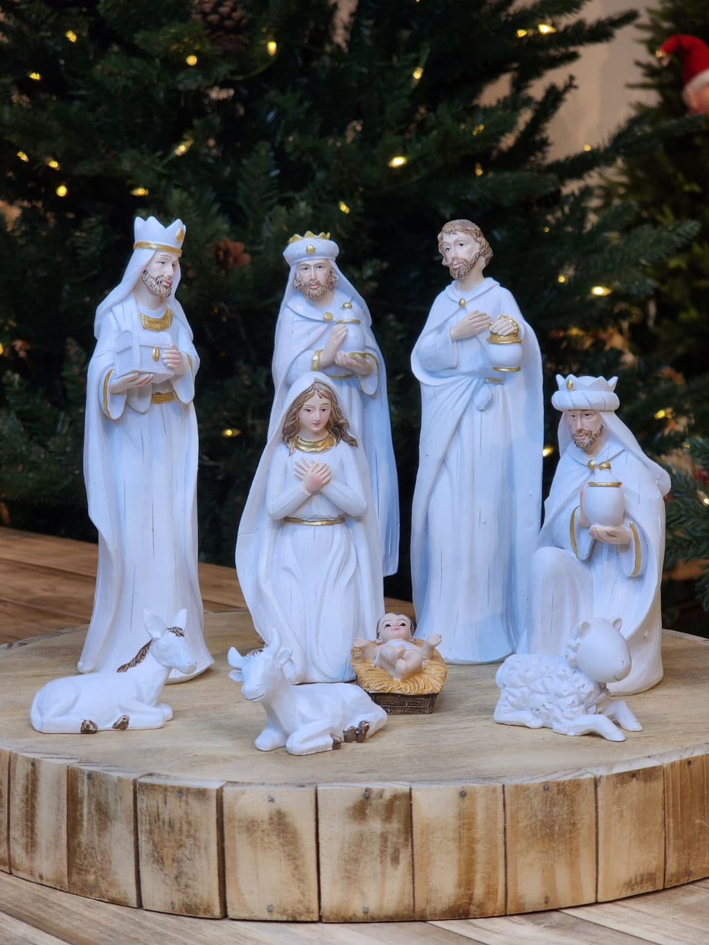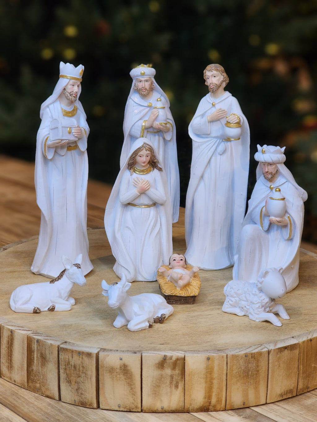 PRESÉPIO EM RESINA BRANCO 9 PÇS