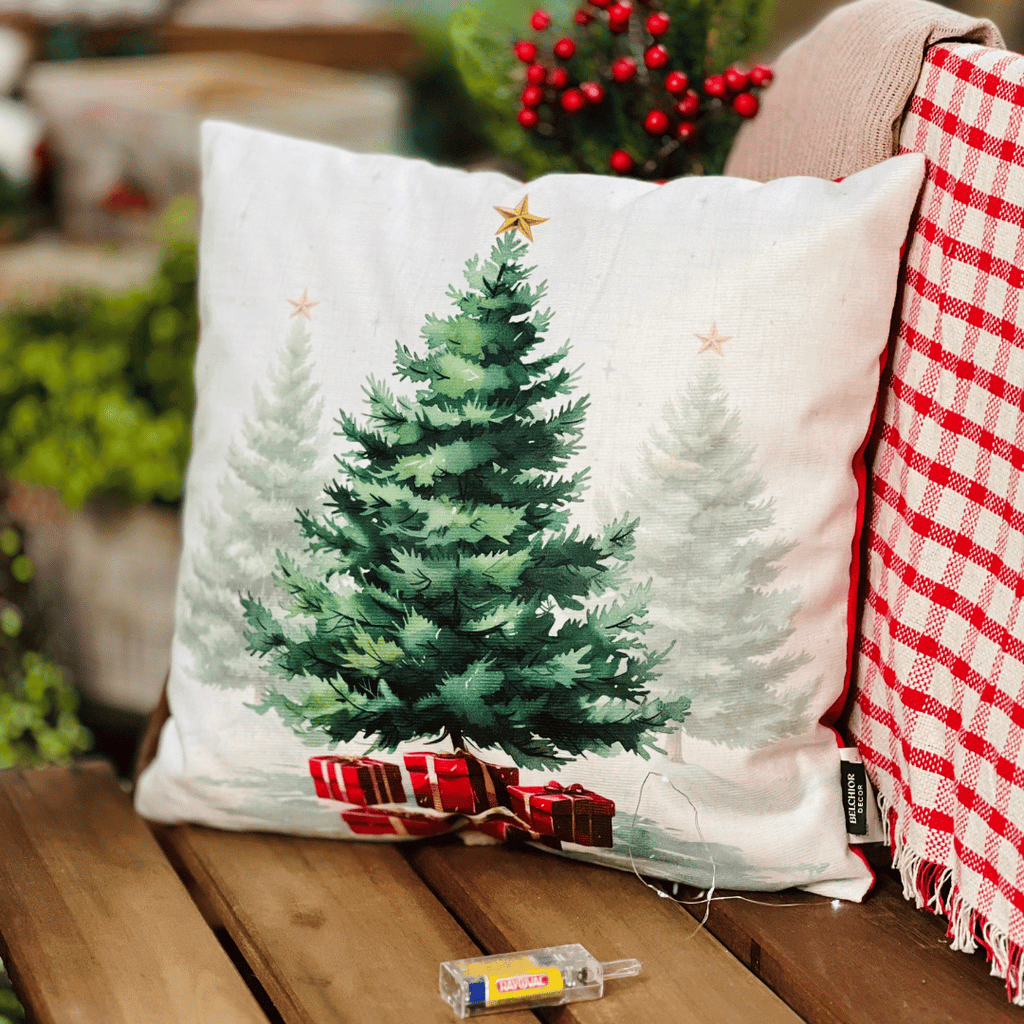 Transforme sua decoração de fim de ano com esta elegante capa de almofada natalina em veludo. Com um design sofisticado e estampa clássica de árvore de Natal iluminada, ela traz charme, aconchego e o verdadeiro espírito natalino para qualquer ambiente.