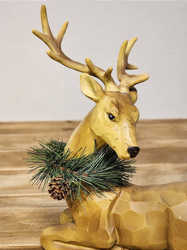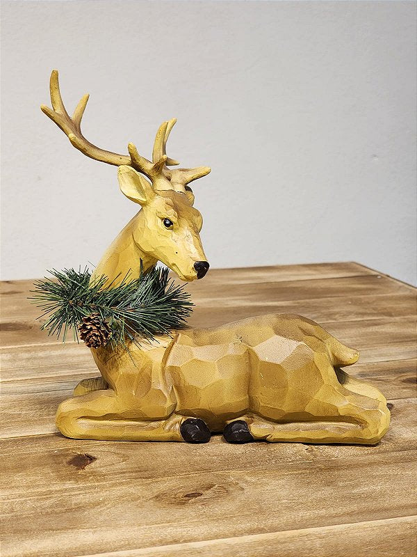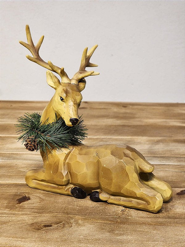 🦌 Rena Deitada com Colar de Guirlanda - 23 cm 🦌