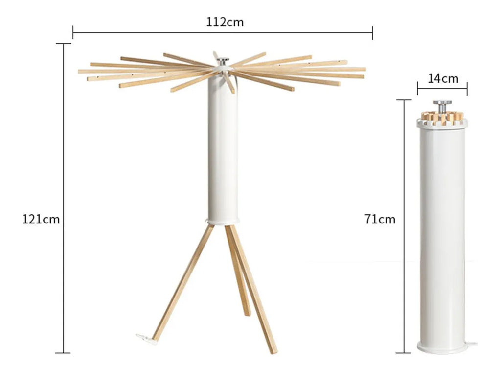 1 ×Varal Portatil Dobrável – estrutura compacta porém robusta com 16 varas de secagem, base em aço e PVC, pés reforçados.